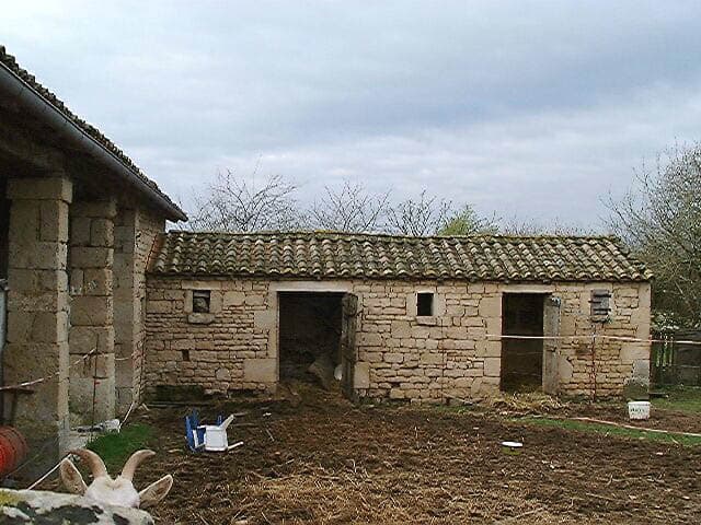 Dépendances accolées perpendiculairement au logis, porcherie ou chèvrerie et poulailler reconnaissable au volet.