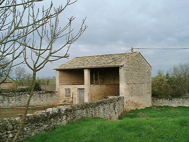 Dépendances, hangar avec pilier maçonné et étable ou écurie avec fenil, vue prise du sud-est.