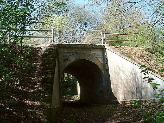 Ancienne voie ferrée de Niort à Ruffec, vue du pont sur un chemin rural avant la Maison-Neuve, prise du sud-est.
