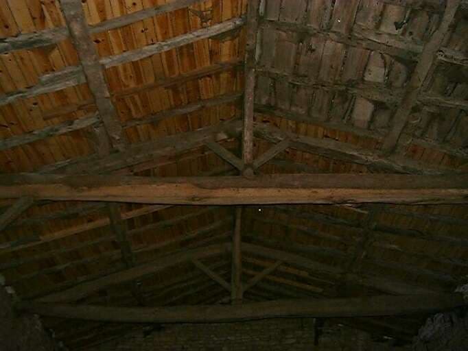 Dépendances, grange antérieure à 1822, intérieur, vue des fermes de la charpente.