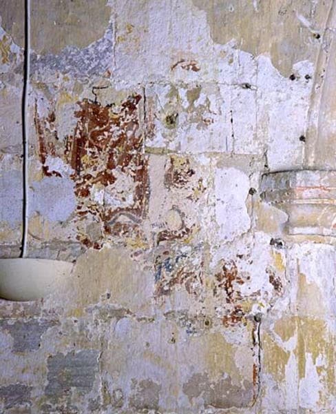 Intérieur, mur sud de la nef, partie gauche, peintures murales, détail