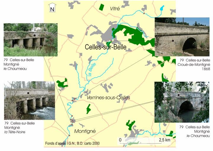 Carte de localisation des ponts franchissant la Belle.