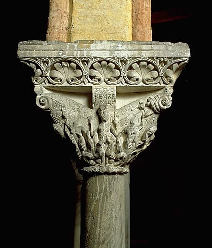 Cloître. Galerie est. Chapiteau n° 37, face b. Martyre de St Fructueux.