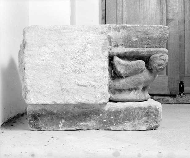 Chapiteau de cheminée trouvé en remploi : vue de profil.