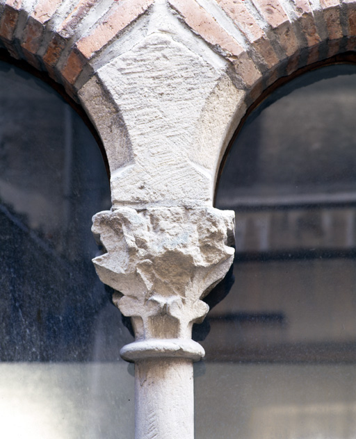 Chapiteau de la fenêtre géminée sur la rue Fondue.