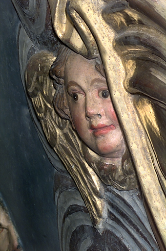 Détail : angelot soutenant la Vierge, après nettoyage.