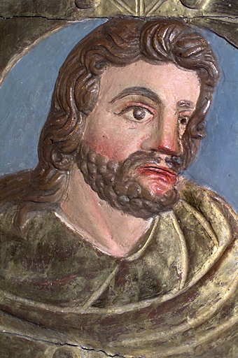 Cartouche à gauche de l'entablement : visage de saint Joseph (?), après nettoyage.