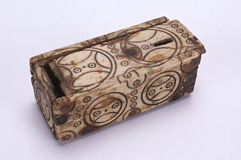 Coffret en os gravé à couvercle coulissant, époque préromane (?).