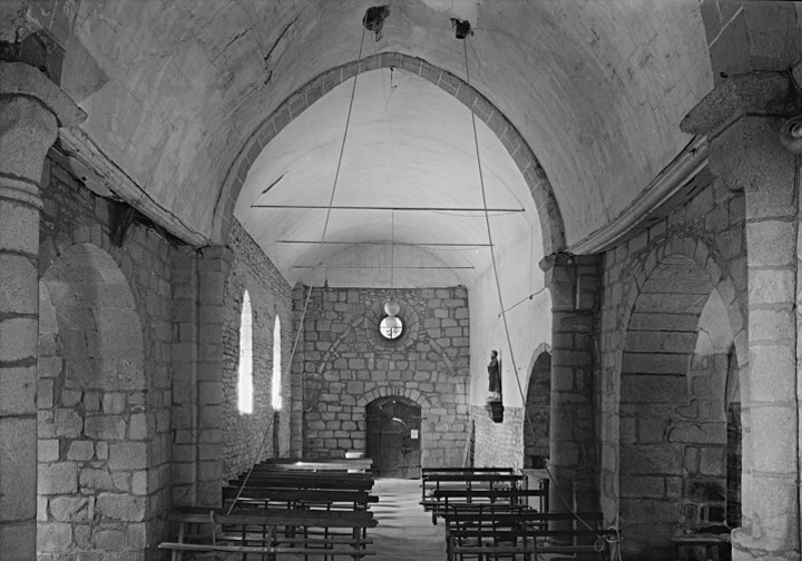 Vue générale intérieure du choeur vers la nef, avec traces d'arrachement des nervures.