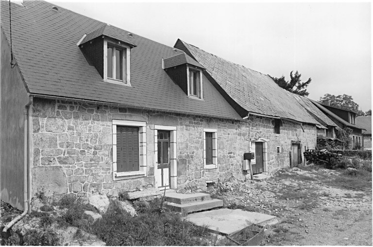 Implantation en schéma linéaire : deux blocs à terre accolés (logis restaurés).