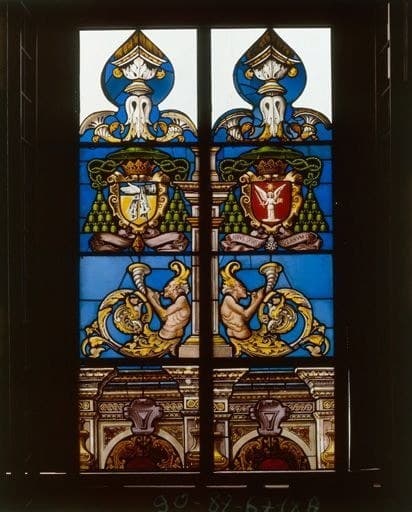 Détail de la partie supérieure des lancettes latérales : armoiries.
