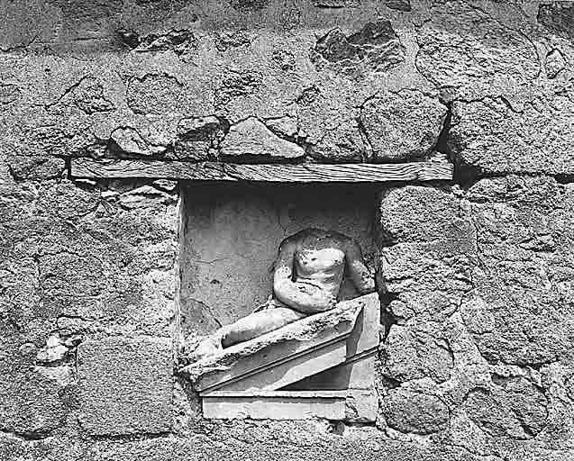 Bourg de Saint-Germain-Beaupré, maison, parcelle 868. Grange nord, détail de sculpture en remploi provenant du château.