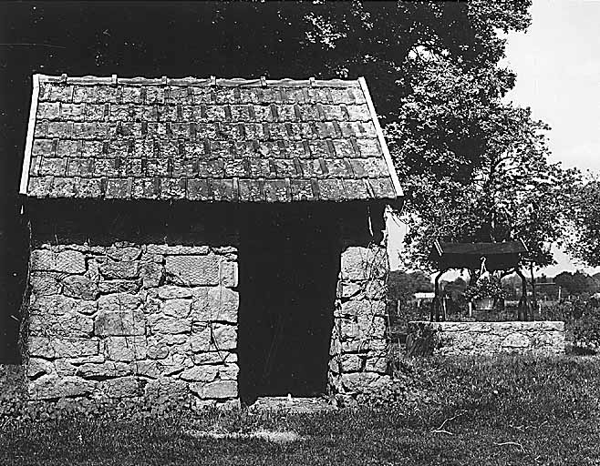 La Maisonbraud. Cabane et puits. Vue d'ensemble.