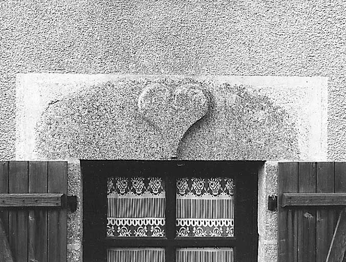 Fontvieille. Logis de ferme (cadastre 1986 B1 838). Vue du linteau d'une fenêtre orné d'un coeur sculpté en bas-relief.