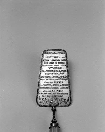 truelle de consécration, pour la pose de la première pierre de la reprise des travaux de la cathédrale de Limoges le 23 avril 1876