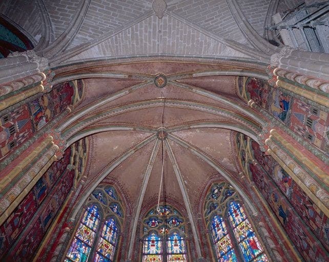 Vue de la voûte et des colonnes, après restauration.