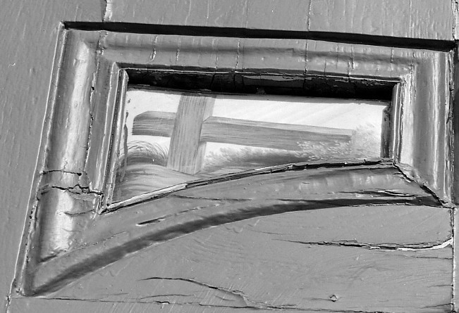Plaques de la partie centrale : détail de la croix couchée dans l'écoinçon en bas à gauche.