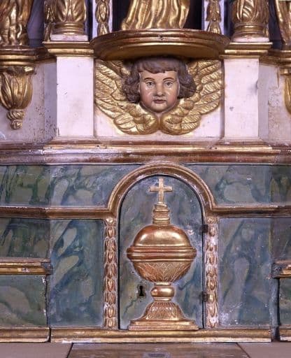 POP | Plateforme ouverte du patrimoineautel tombeau, gradin d'autel, tabernacle à ailes, exposition, 5 statuettes (autel de la chapelle sud)