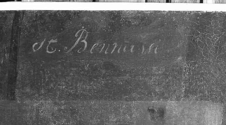 Détail de la signature, après restauration : A. Bennassi (Nicolas-Alphonse Bennassi-Desplantes).