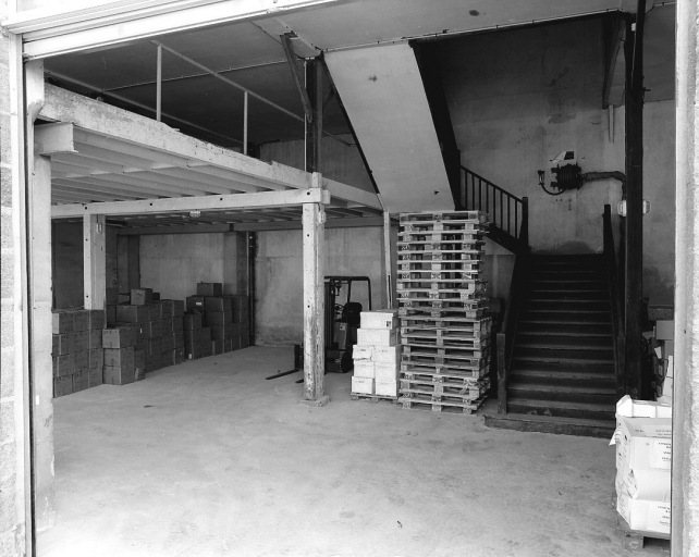 Vue intérieure des anciennes écuries de l'usine transformées en entrepôts.