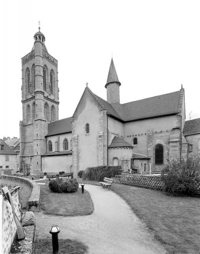 Vue d'ensemble de l'élévation sud, prise après la restauration de l'église ; au premier plan s'étend le jardin aménagé à l'emplacement de l'ancien cloître.