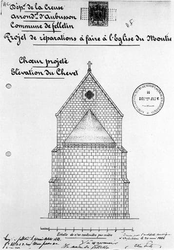 Projet de réparations à faire à l'église du Moutier dressé par Elie Pauly, le 20 mai 1866. Choeur projeté : élévation du chevet ; échelle 1:100.