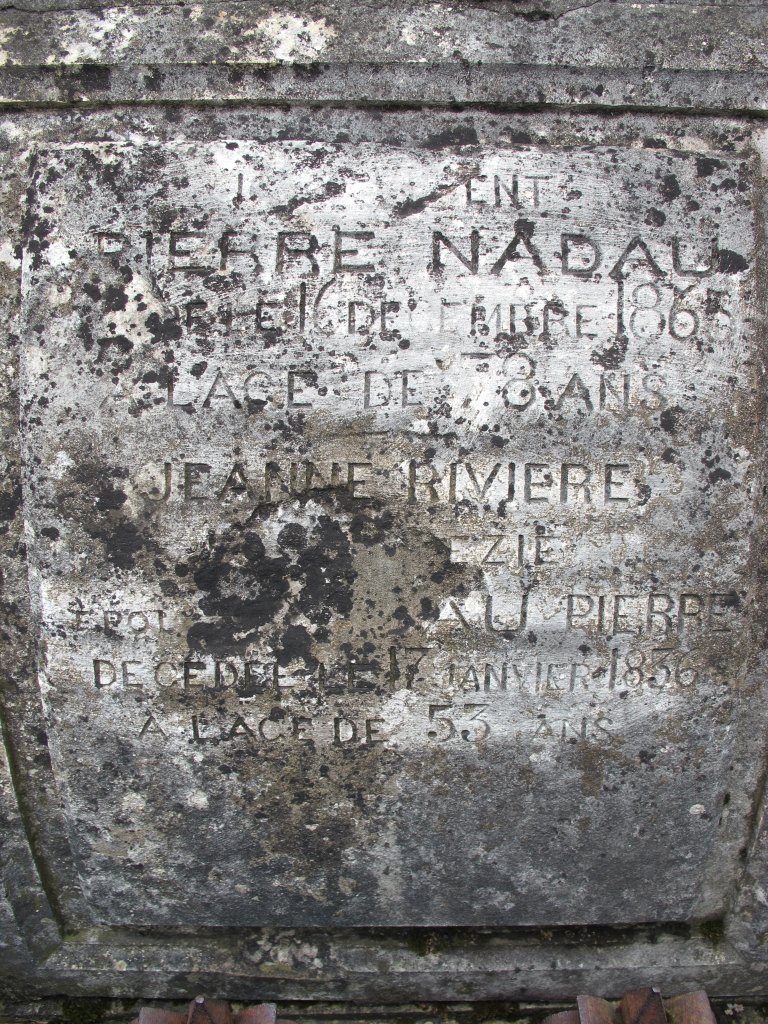 Détail de la plaque funéraire de Pierre Nadau et de son épouse.