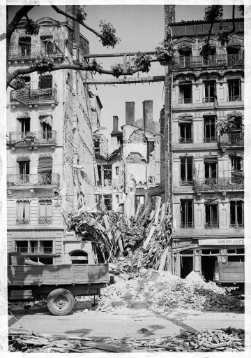Vue du 3 quai Perrache après les bombardements du 26 mai 1944. Photogr.