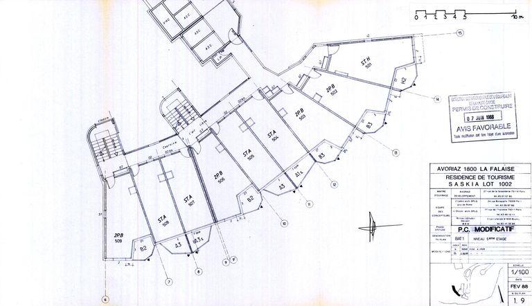 Permis de construire modificatif. Plan du 5e étage / J. Labro, J. J. Orzoni, bureau d'études Decaen, février 1988 (AC Morzine)
