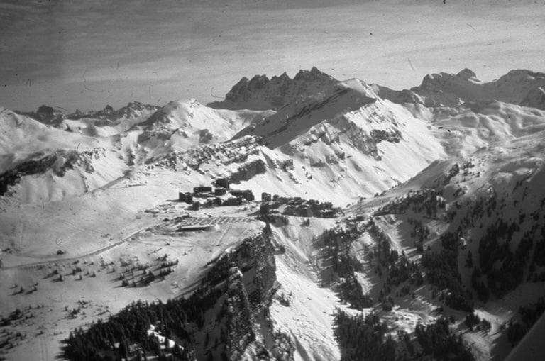 Hiver 1981-1982, vue aérienne de la station. Photographie SEATM