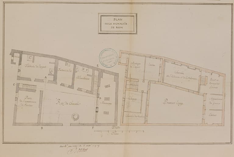 Plan de la Monnoye de Riom, arrêté par nous ce 6 mai 1719. Boucher [intendant]