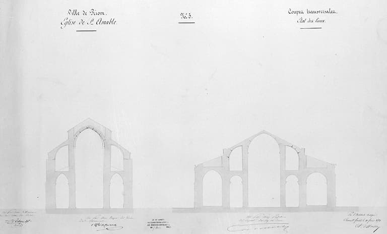 Ville de Riom. Eglise de Saint-Amable n°5. Coupes transversales, état des lieux.
