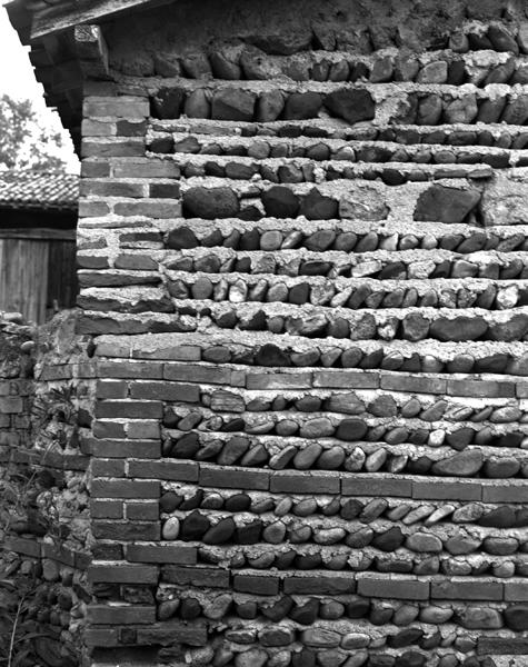 Détail d'un appareil de galets avec assises de briques (Les Maréchaux, Luzillat).
