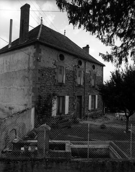 Vue générale d'un logis de ferme en moellons d'andésite, et encadrements et chaînes d'angles en andésite (La Barbine, Luzillat).