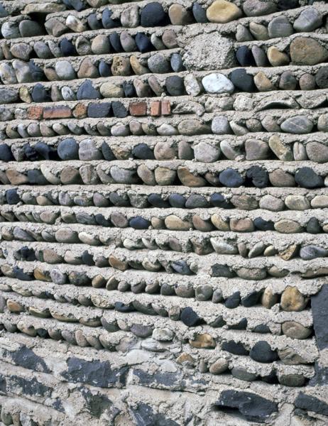 Détail d'un appareil de galets sur solin d'andésite (Pont-Picot, Maringues).