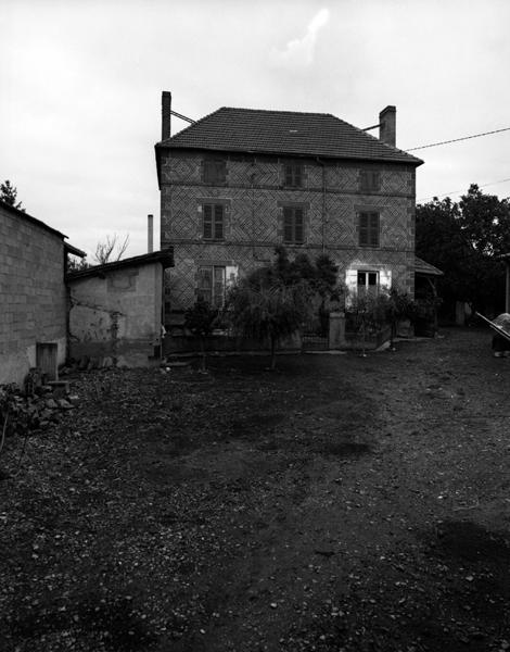 Vue générale d'un logis de ferme à élévation en briques polychromes (Vensat, Maringues).