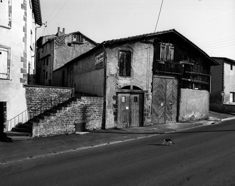 Vue générale d'une dépendance urbaine, avec essentage de planches (Maringues, ville).