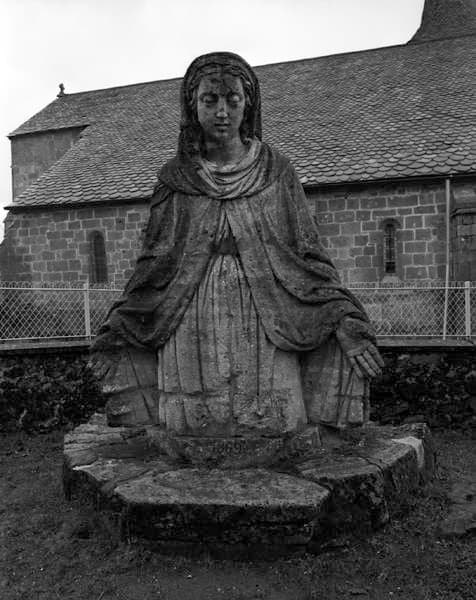 Fragment de la Vierge à l'enfant sculptée par Monbur en 1869 et remplacée par une statue en fonte plus résistante aux intempéries. La statue de Monbur est déposée dans la cour de la maison familiale des Deux-Sèvres, dans le hameau de Saint-Pardoux