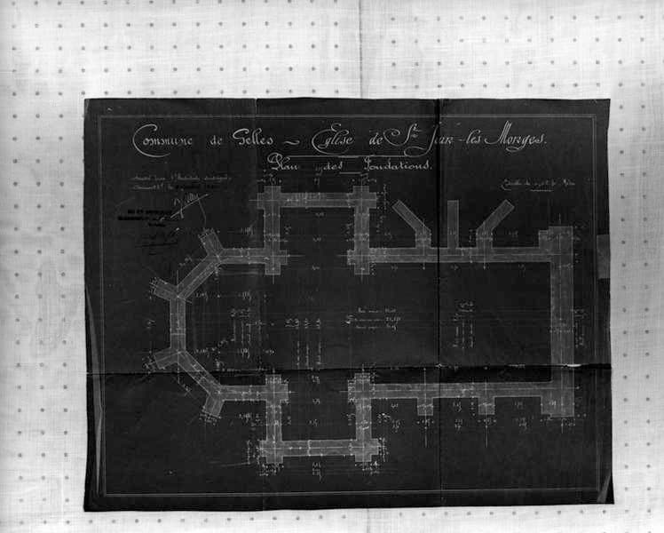 Commune de Gelles. Eglise de Saint-Jean-les-Monges. Plan des fondations.