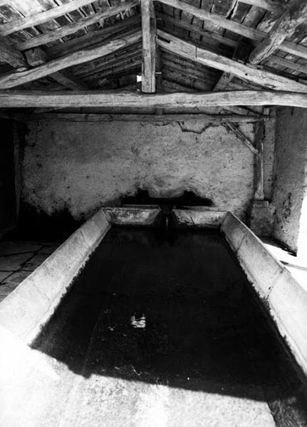 Lavoir portant la date 1875 sur la charpente Vue du bassin