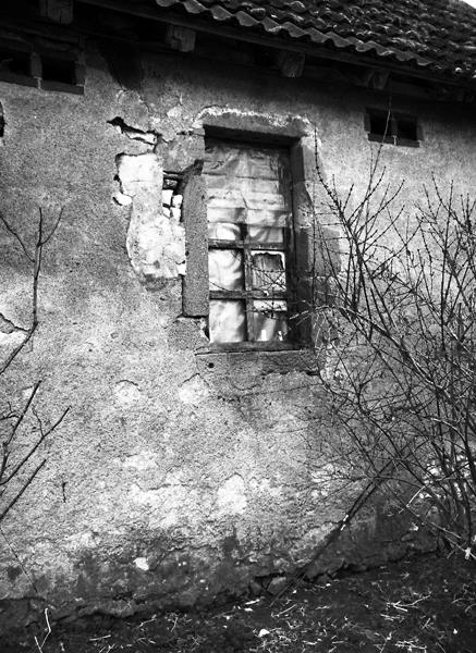 Logis ancien, façade nord. Vue de détail de la grande fenêtre repercée.