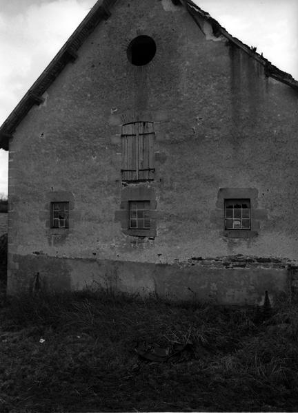 Vue de détail de l'oeil-de-boeuf sur le pignon ouest de la grange étable.
