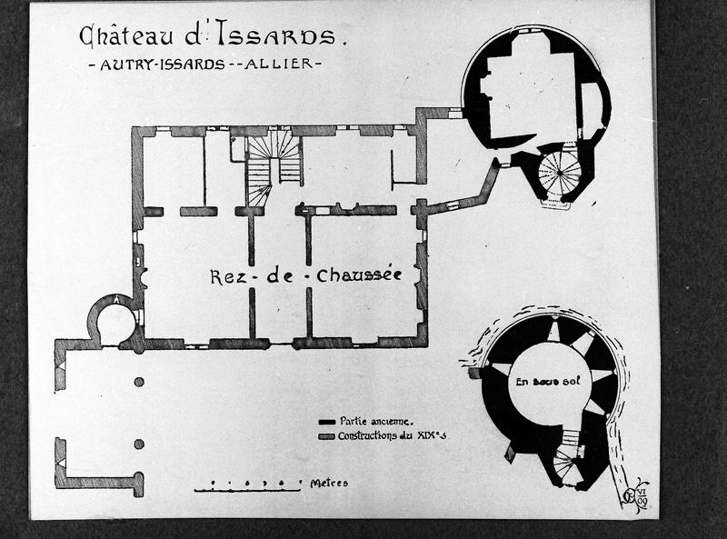 Plan à terre du château d'Issards postérieur aux reconstructions de Moreau.