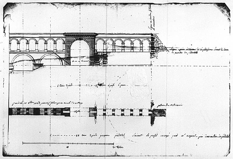 Projet de Franque pour le raccordement des Arceaux à la place du Peyrou. Plan (AD Hérault C.7953)