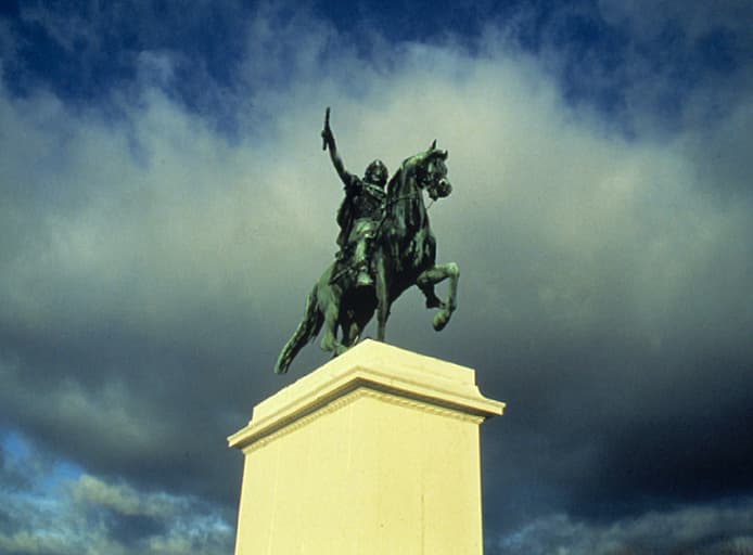 Statue équestre, ciel d'orage, vue depuis l'arc de triomphe.