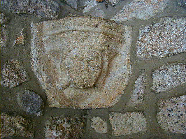 Culot sculpté de l'ancienne église en remploi sous le préau de l'école
