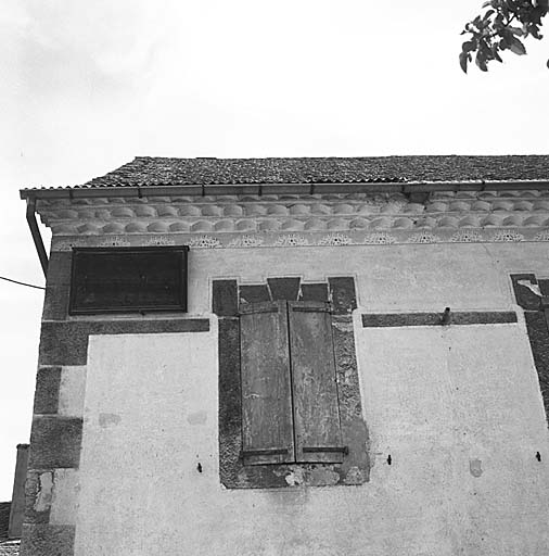 Détail du faux appareil. A noter la frise peinte qui souligne la génoise.