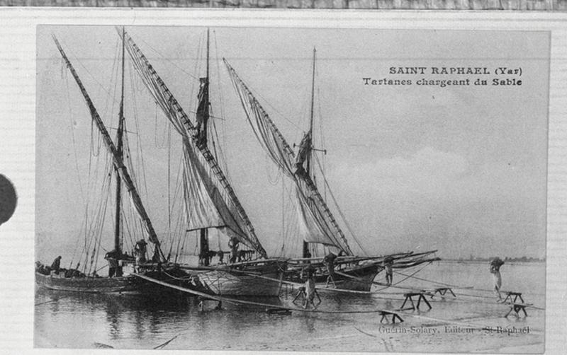 Saint-Raphaël (Var). Tartanes chargeant du sable.