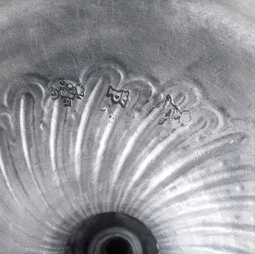 Poinçon du maître Bernard Georgeur, lettre-date, poinçon de charge de Paris, sous le pied.