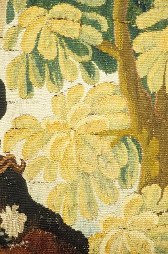 Tableau de tapisserie 1 : Saint Joseph, sainte Marguerite d'Antioche, saint Jacques le Majeur. Verdure à droite de la tête de saint Jacques.